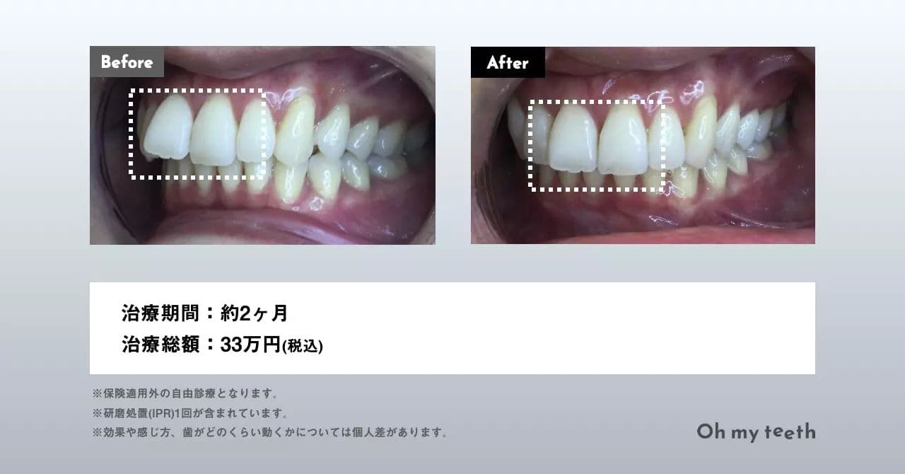 当院で実際にマウスピース矯正Oh my teethによる部分矯正治療を受けた方の症例は、以下のとおりです。